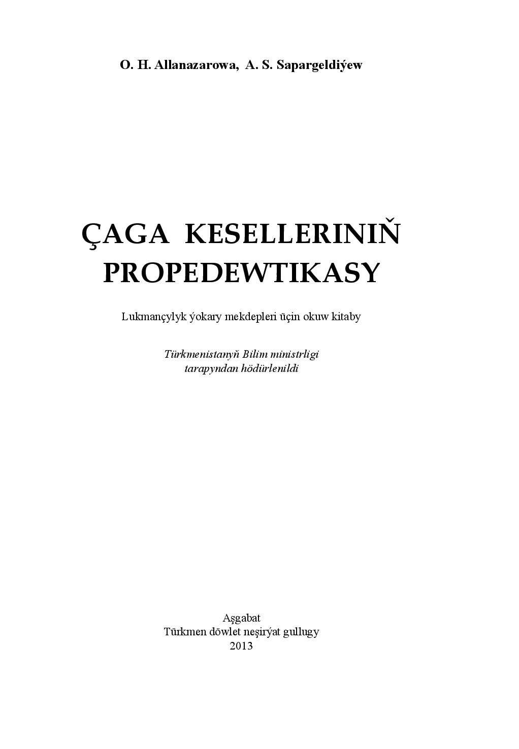 Allanazarowa O~çAga Keselleriniň Propedewtikasy