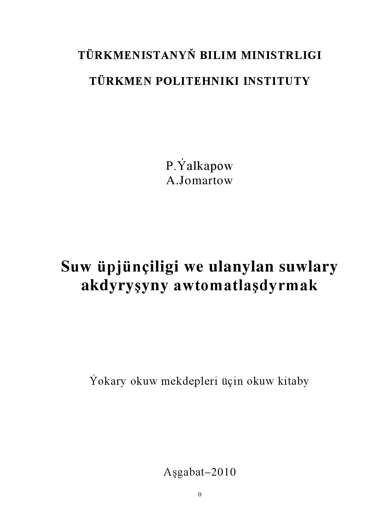 ýAlkapow P Suw üPjüNçIligi We Ulanylan Suwlary AkdyryşYny AwtomatlaşDyrmak