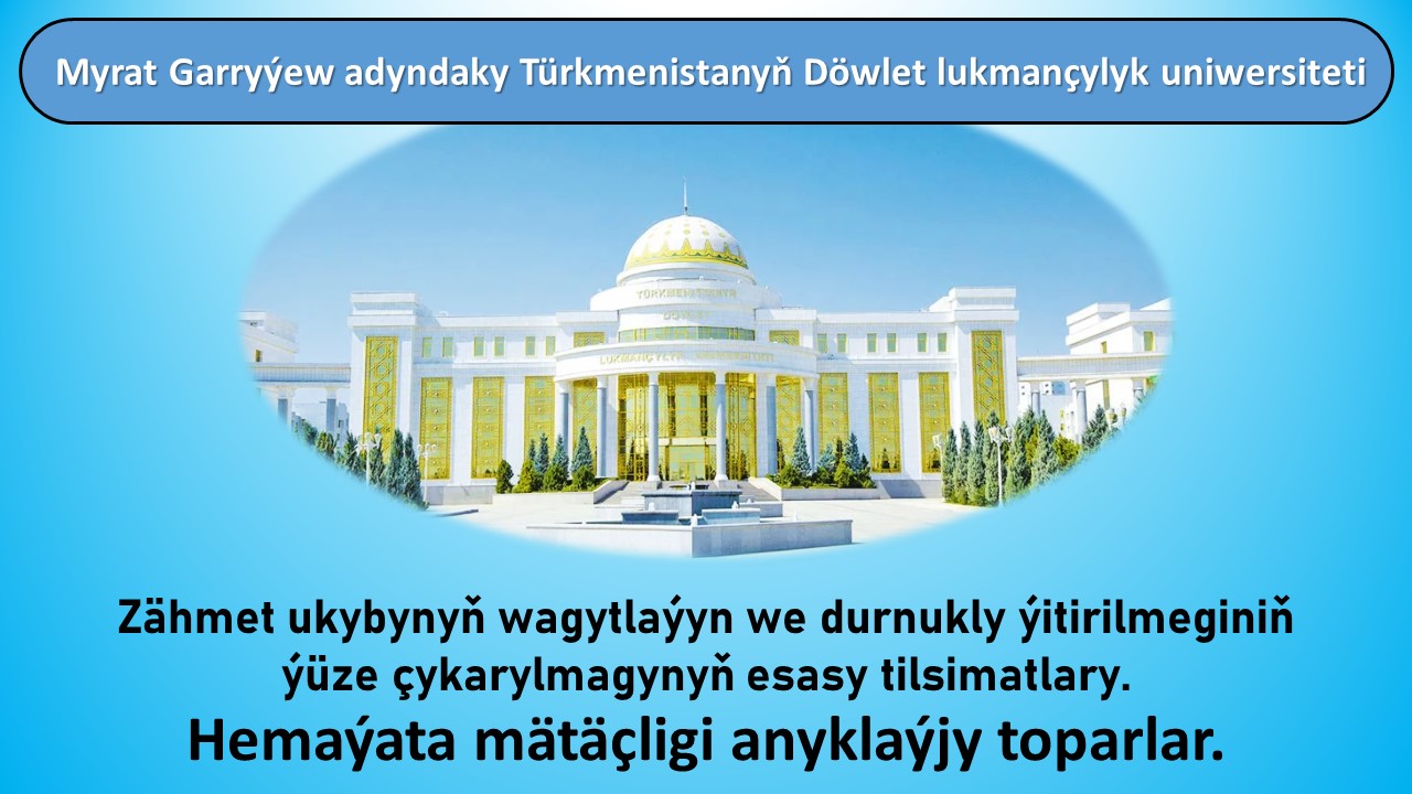 Işleýän ýa-da okaýan ýeri: Myrat Garryýew adyndaky Türkmenistanyň Döwlet lukmançylyk uniwersiteti