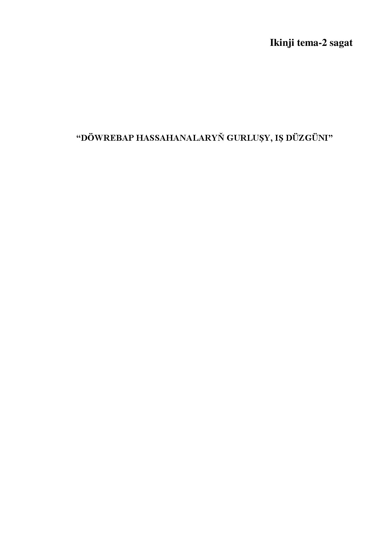 DöWrebap Hassahanalaryň GurluşY, Iş DüZgüNi