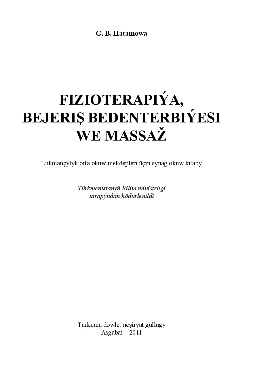 Ilmyradow K~Bejeriş BedenterbiýEsi We Lukman GöZegçIligi