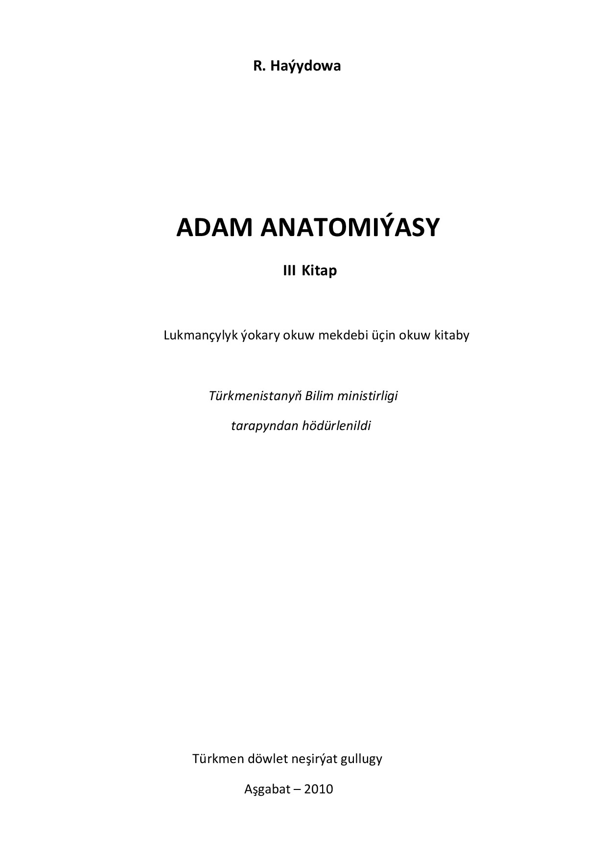ADAMYŇ ANATOMIÝASYNYŇ ATLASY I
